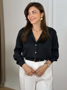 Chemise fluide à la coupe classique revisitée, offrant une allure élégante et intemporelle. Facile à porter, elle s’adapte parfaitement à un style chic et soigné au quotidien.