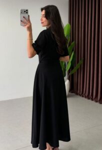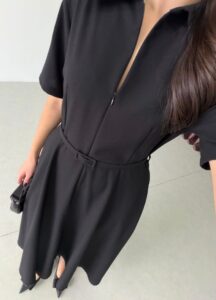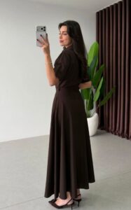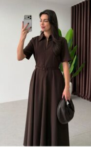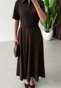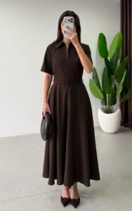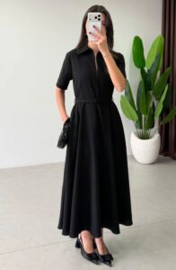 Robe élégante à la coupe fluide, dotée d’une taille ceinturée qui met en valeur la silhouette. Son design raffiné et intemporel en fait une pièce idéale pour une allure féminine et sophistiquée.